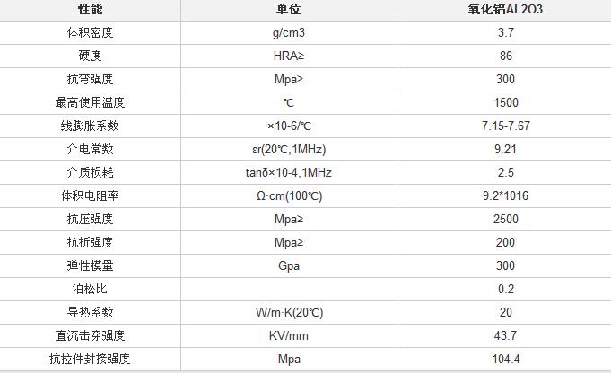 氧化鋁陶瓷的技術(shù)參數(shù)